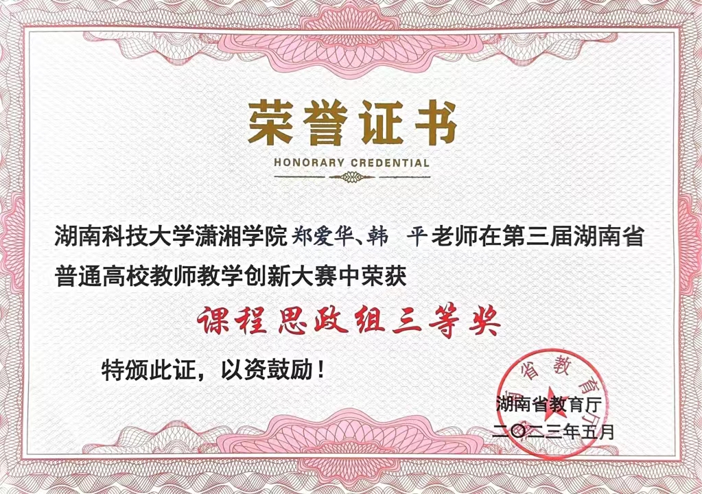2023年5月参加第三届”湖南省普通高校教师教学创新大赛获“课程思政组三等奖