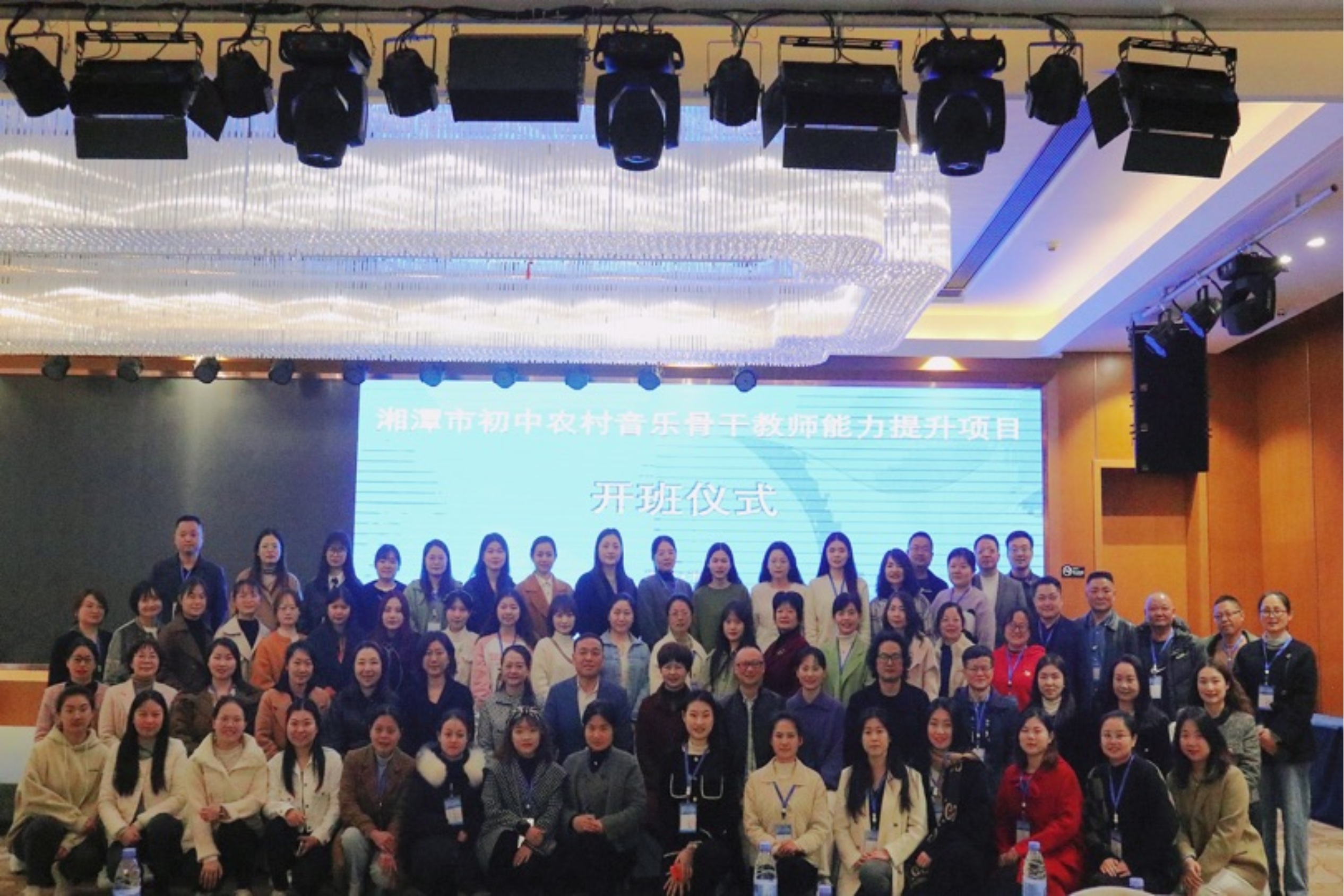 4月23日上午我校与湘潭市教育局,教师发展中心联合举行湘潭市初中农村音乐骨干教师能力提升项目开班仪式。湘潭市教育科学研究院院长成芳、湘潭市教育局教师科科长谭京湘,国产自拍副院长王育霖教授,音乐系主任杨姝老师出席此次活动。