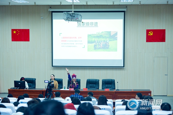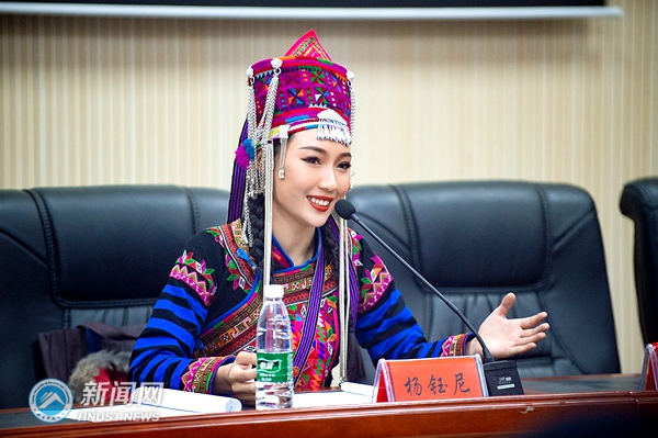 杨钰尼向大家介绍了自己回乡创业的经过。她在大一的时候就开始在自己的家乡创立钰尼文化艺术传承中心,同时申请成立红河哈尼梯田文化传承学校教学点,她一边开展国家级非遗多声部民歌、乐作舞和哈尼儿歌、器乐、手工艺等民族文化的传承教学,一边开展文艺志愿服务下乡活动和青少年儿童美育教育,累计培训民族学员3000余人,现在校生400余人,有50多名学员通过舞蹈艺术考上了本科大学。她一直坚持组织参与送艺下乡、社区服务、走访群众和公益培养艺术人才等活动,让美育进校园,歌舞进校园,非遗传承进校园。