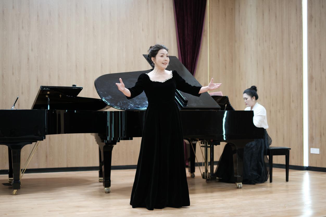 声乐组教师在现场演绎歌曲