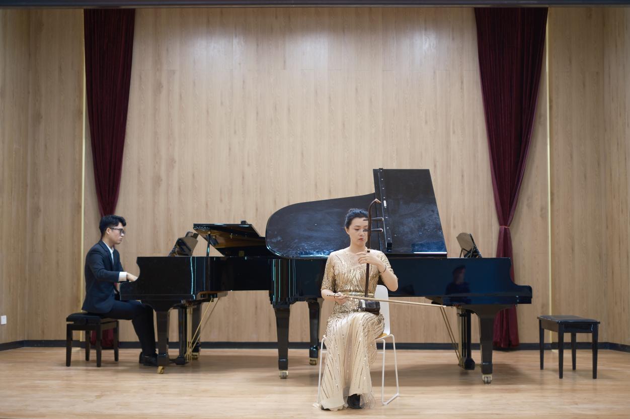 随着最后一阵掌声响起,近四个小时的专业技能考核圆满落下帷幕。参与考核的专任教师根据各自专业分类和岗位属性,在钢琴、声乐、理论、器乐、舞蹈共5个专场中各显身手,得到了行业专家评委的一致好评。远赴新疆吐鲁番支教的“心与馨”志愿服务队的两位带队教师也通过视频的形式在线参与了此次技能考核。
